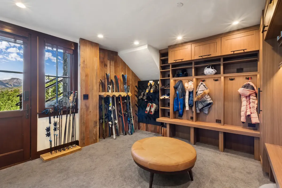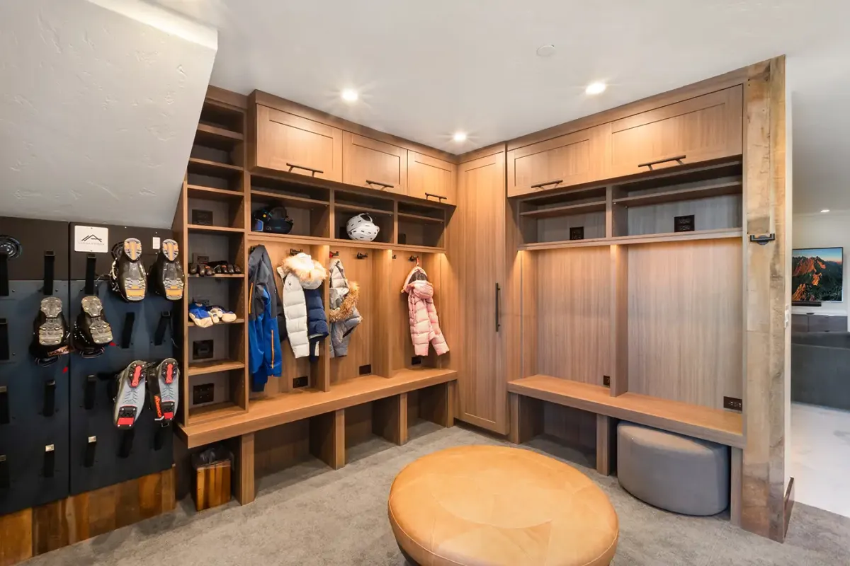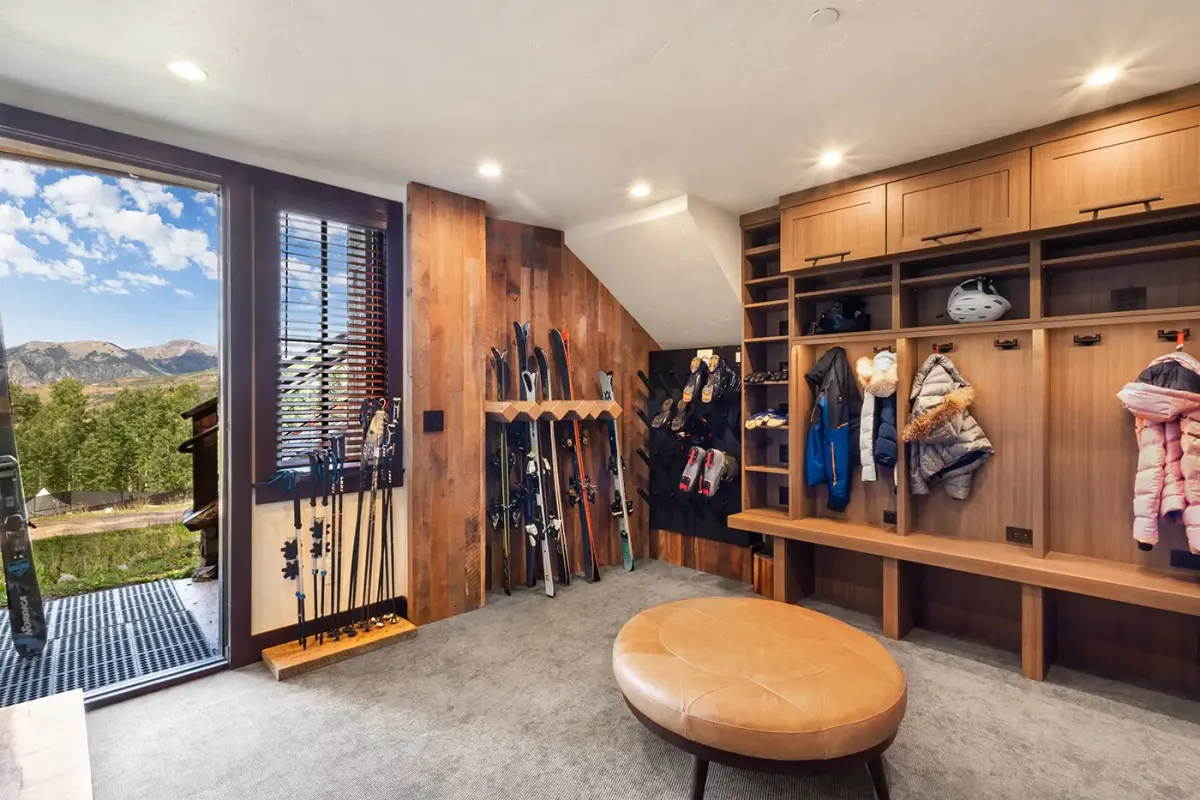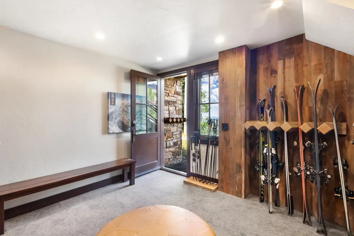 Aspens at Courcheval boasts several stunning, sun-kissed outdoor spaces for enjoying the crisp mountain air and world-class views. In one outdoor space, there's a gas barbecue for grilling some juicy steaks for dinner, while another deck space houses the relaxing hot tub with views of the lush, rolling hillside and mountain peaks beyond. Additionally, the home has a media room on the lower level complete with a wet bar. Next to the media room is the ski room outfitted with cubbies for gear storage and boot dryers to keep your ski boots dry. The spacious ski room door opens directly onto a ski run.