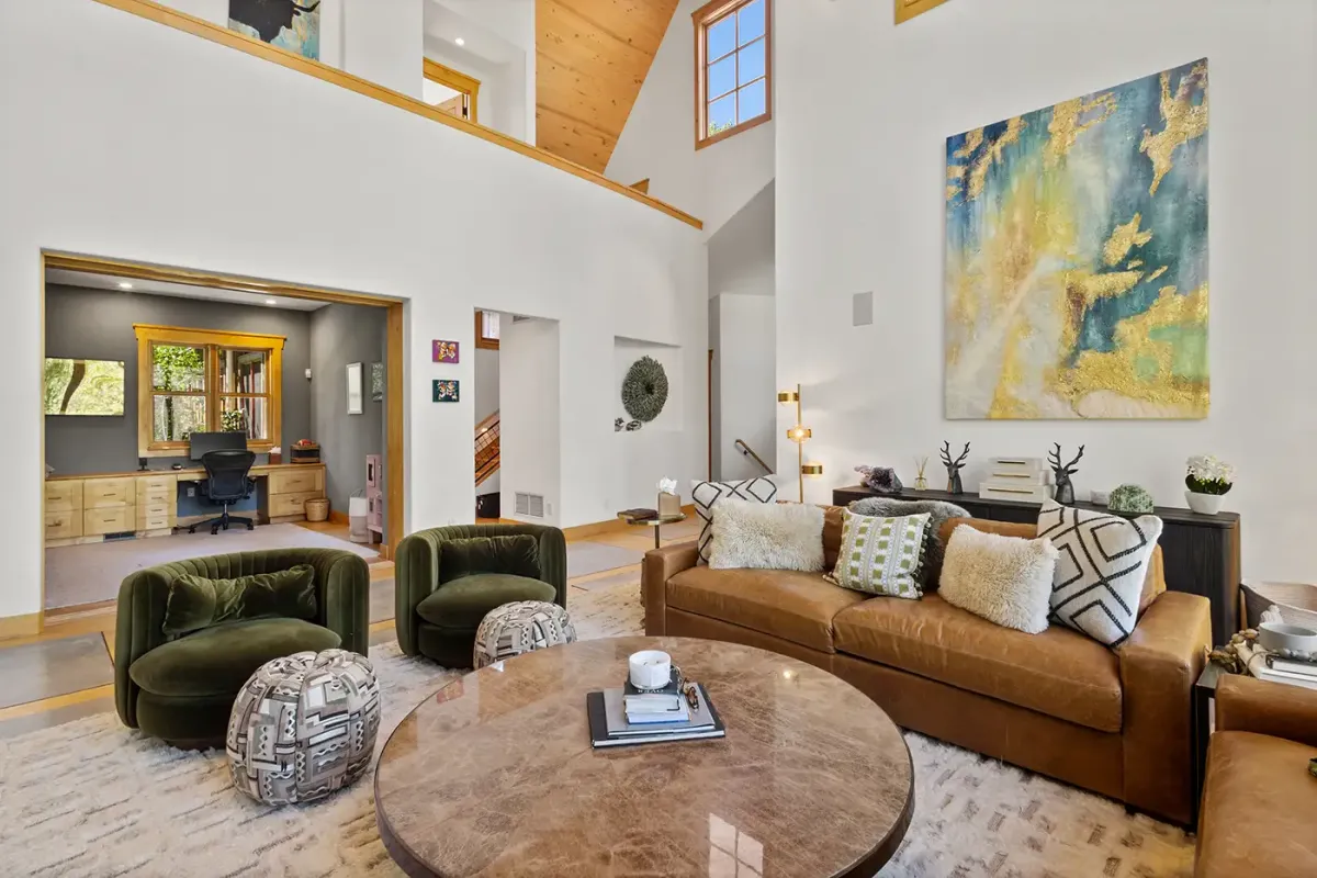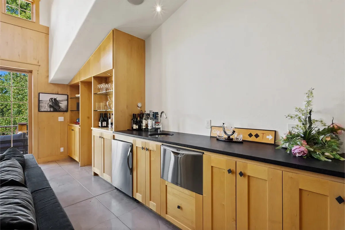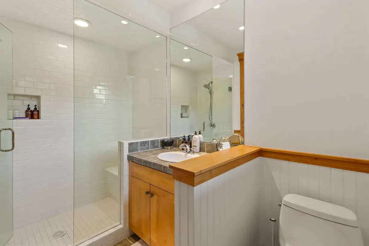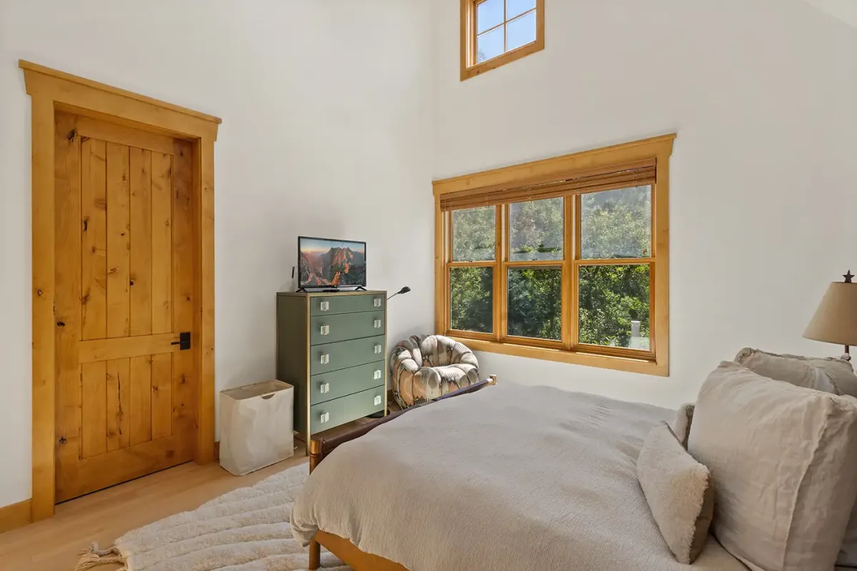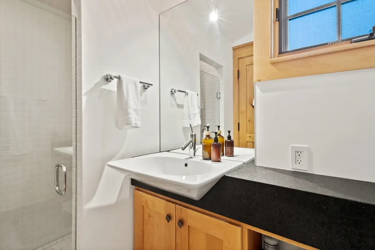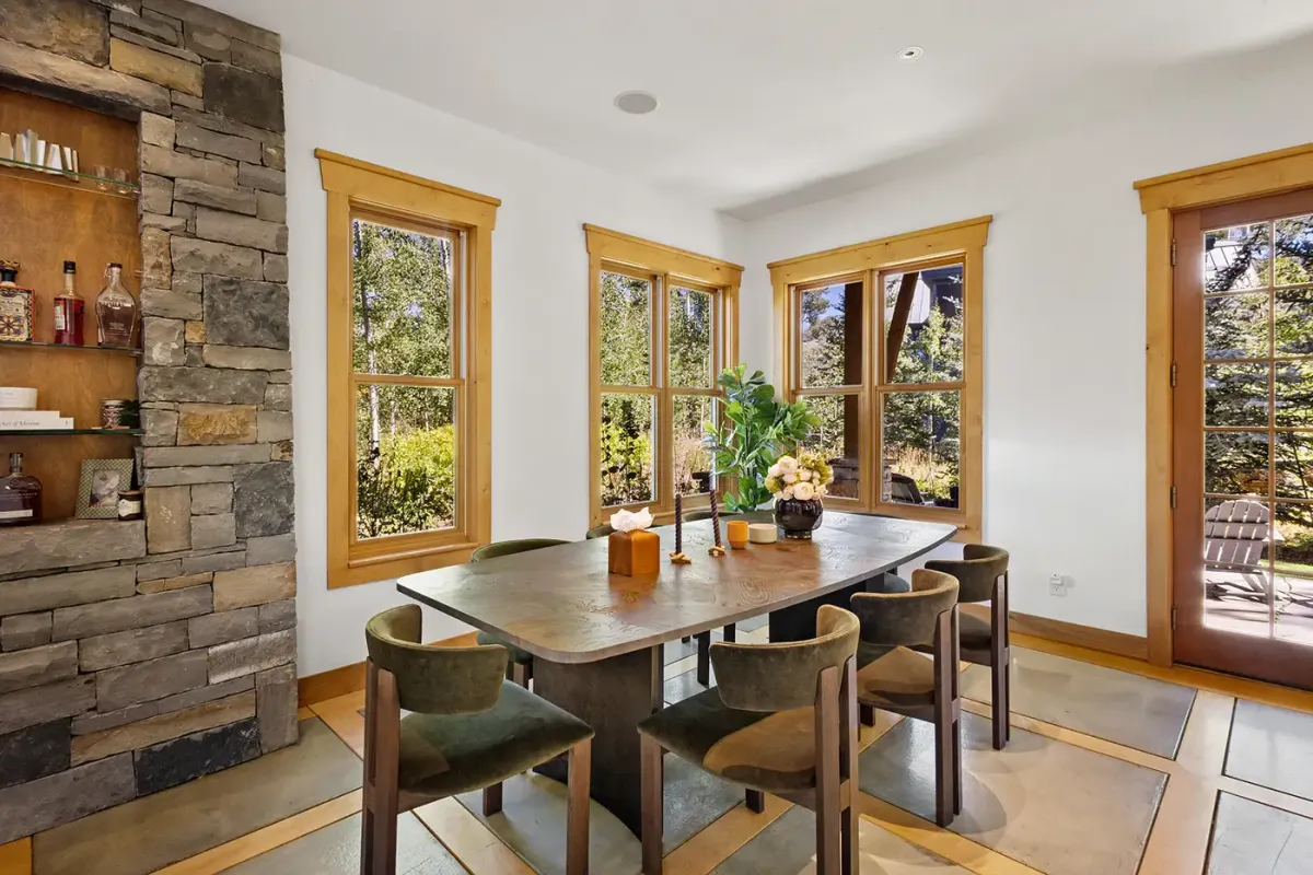 Additional amenities elevate the experience, including a second family room with vaulted ceilings and a fireplace, wide-plank white oak floors, and a spacious mudroom to accommodate gear after a day of adventure. Thoughtful touches and modern furnishings throughout the home create a seamless blend of casual elegance and practicality.