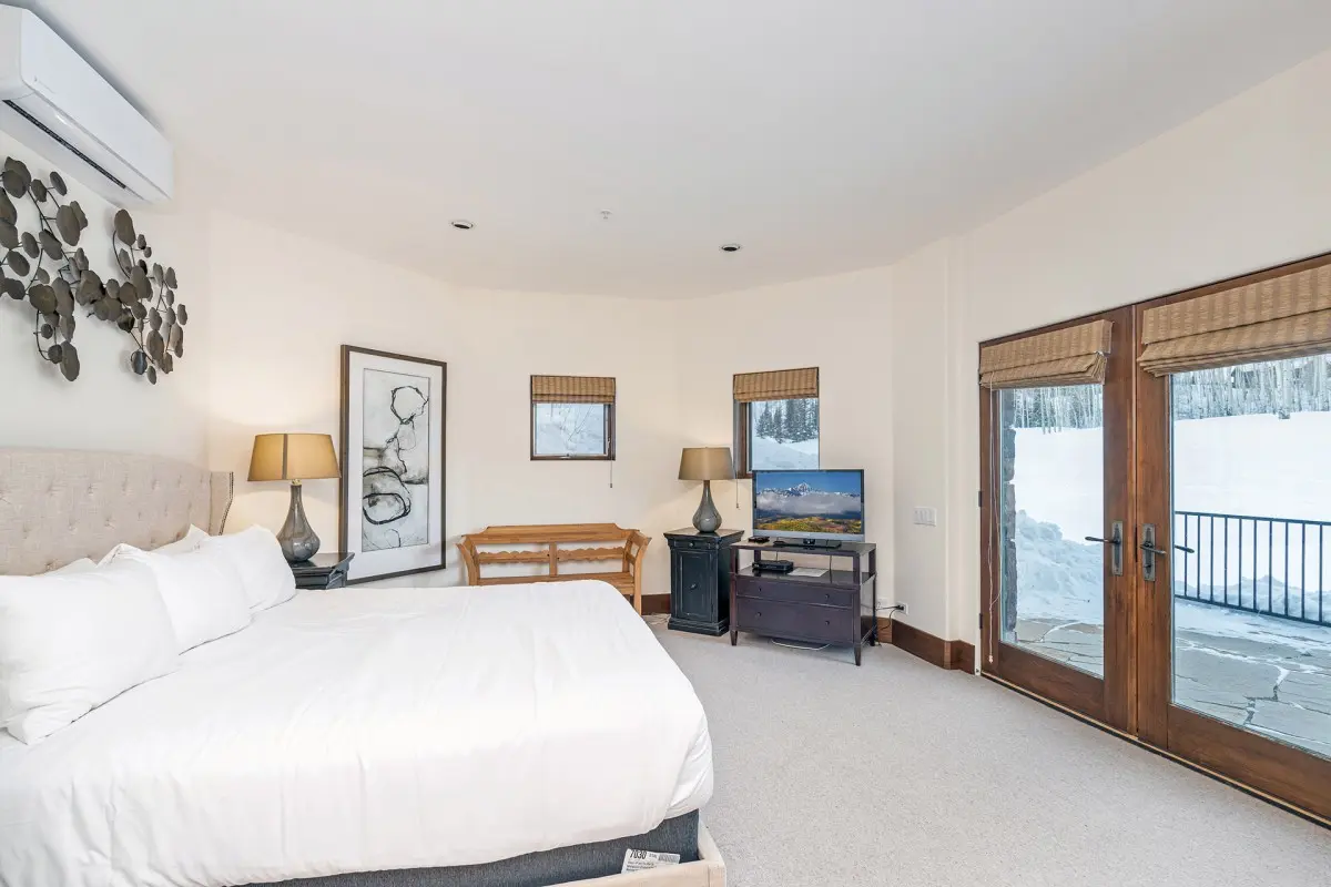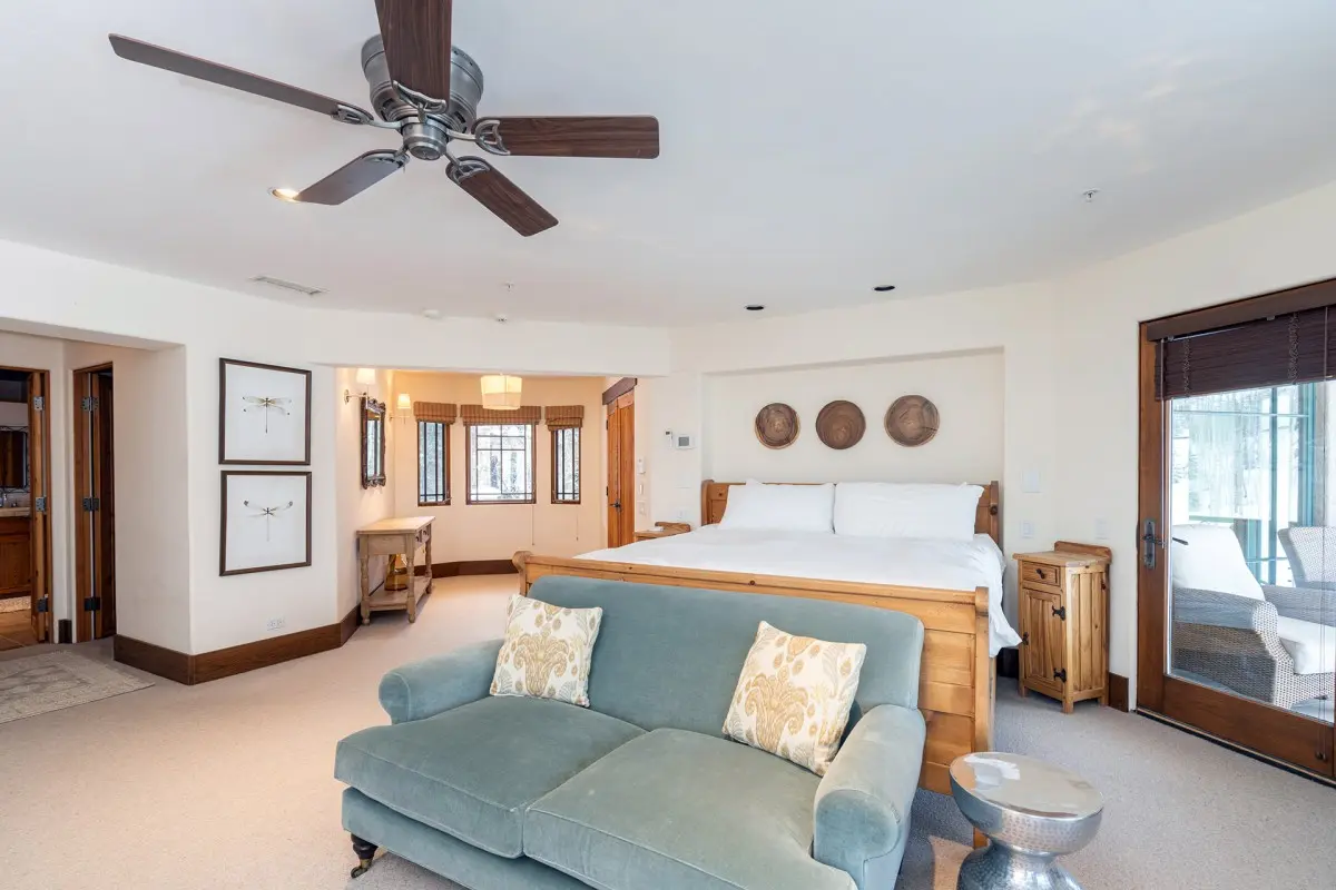 Take the glamorous swirling stairway back down to the lower level, where there's another bedroom that can double as a nanny's room or caretakers' suite- complete with a king-size bed, full bathroom, kitchenette, and separate private entrance. This level also houses a comfy media room with a large HDTV and crackling fireplace surrounded by a plush sectional sofa and a wine cellar. There's also an incredibly convenient mudroom/storage area that allows you to store all your gear with incredible ease, then take a dip in the hot tub or a relaxing moment in the steam room after a long day on the trails.