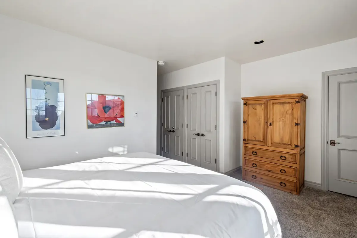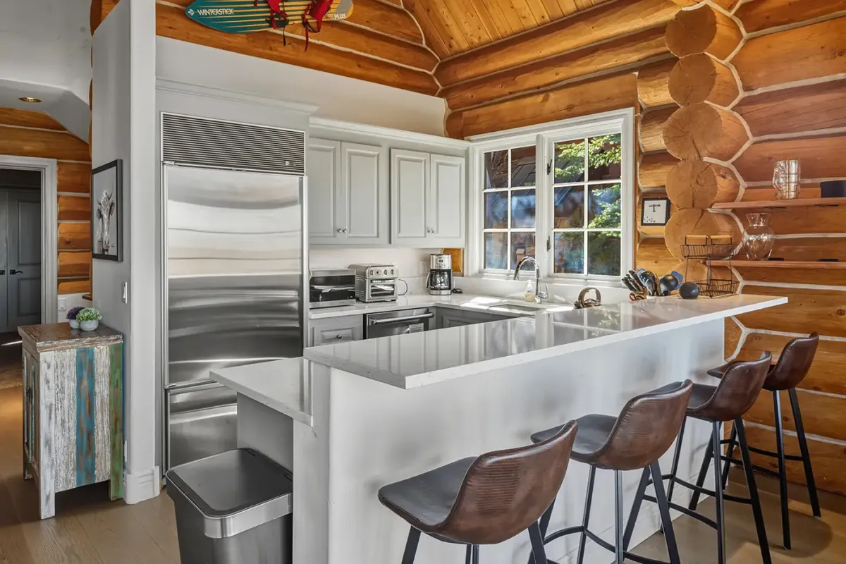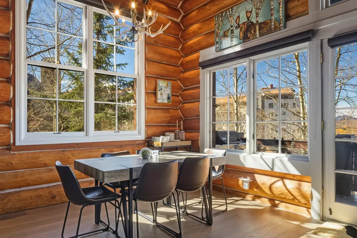 Step inside to discover a bright and welcoming interior that perfectly balances mountain character with modern style. The light-filled kitchen features quartz countertops, high-end appliances, and bar seating for four—ideal for casual breakfasts before hitting the slopes. The adjacent dining area comfortably seats six, creating a natural flow for gathering and sharing meals together.