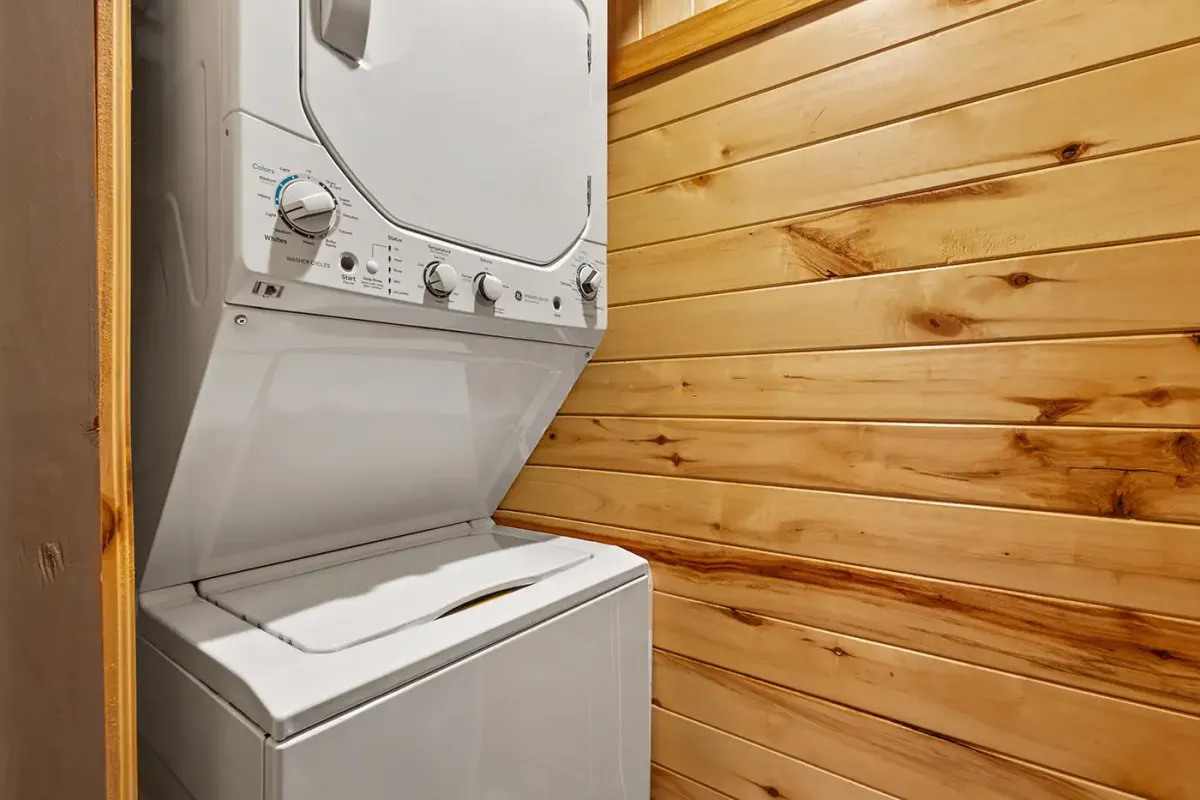 Upstairs, the top-level bedroom offers two double beds, a flat-screen TV, and an en suite bathroom with a tub/shower combination—perfect for kids or extra guests. On the lower level, a queen bedroom has a flat screen TV and en suite bathroom with rejuvenating steam shower. The primary bedroom is beautiful and spacious with its king size bed, flat screen TV, French doors leading to a private patio, and en suite bathroom. A stackable washer and dryer and powder room are provided for added convenience.