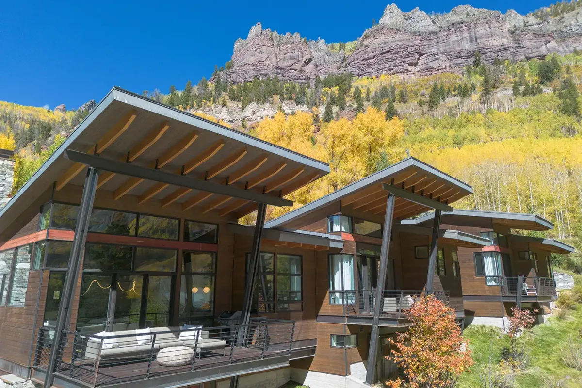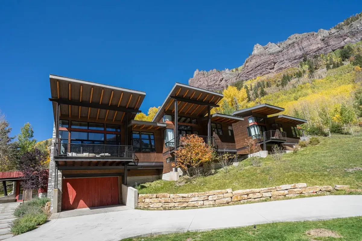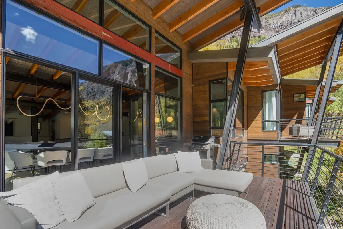 Nestled at the base of the box canyon in one of Telluride’s most awe-inspiring settings, Bridal Veil Retreat offers a rare opportunity to live within sight and sound of two of the region’s most famous landmarks — Bridal Veil Falls and Ajax Peak. This architectural masterpiece sits at the east end of town, where the landscape feels almost untouched yet remains only a mile from downtown Telluride. Surrounded by cascading waterfalls, towering cliffs, and endless sky, the home is a celebration of mountain modern design — where steel, wood, and glass come together in perfect harmony.