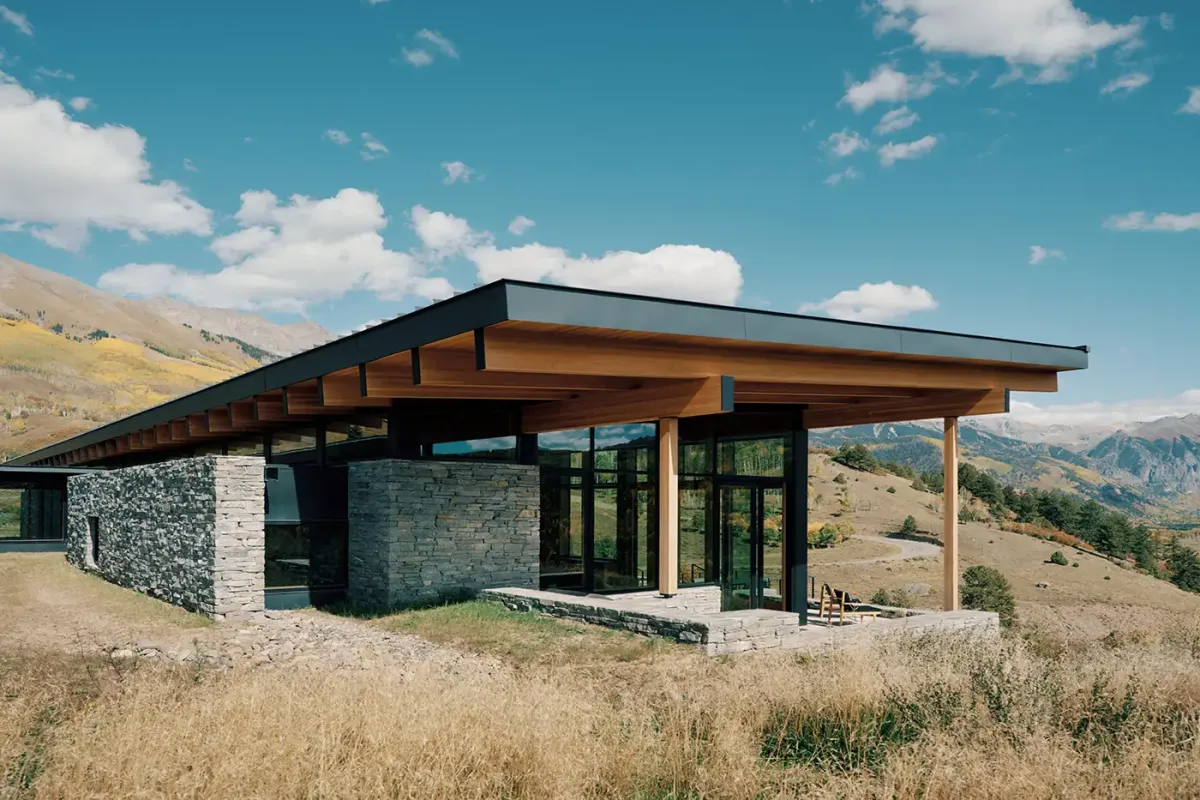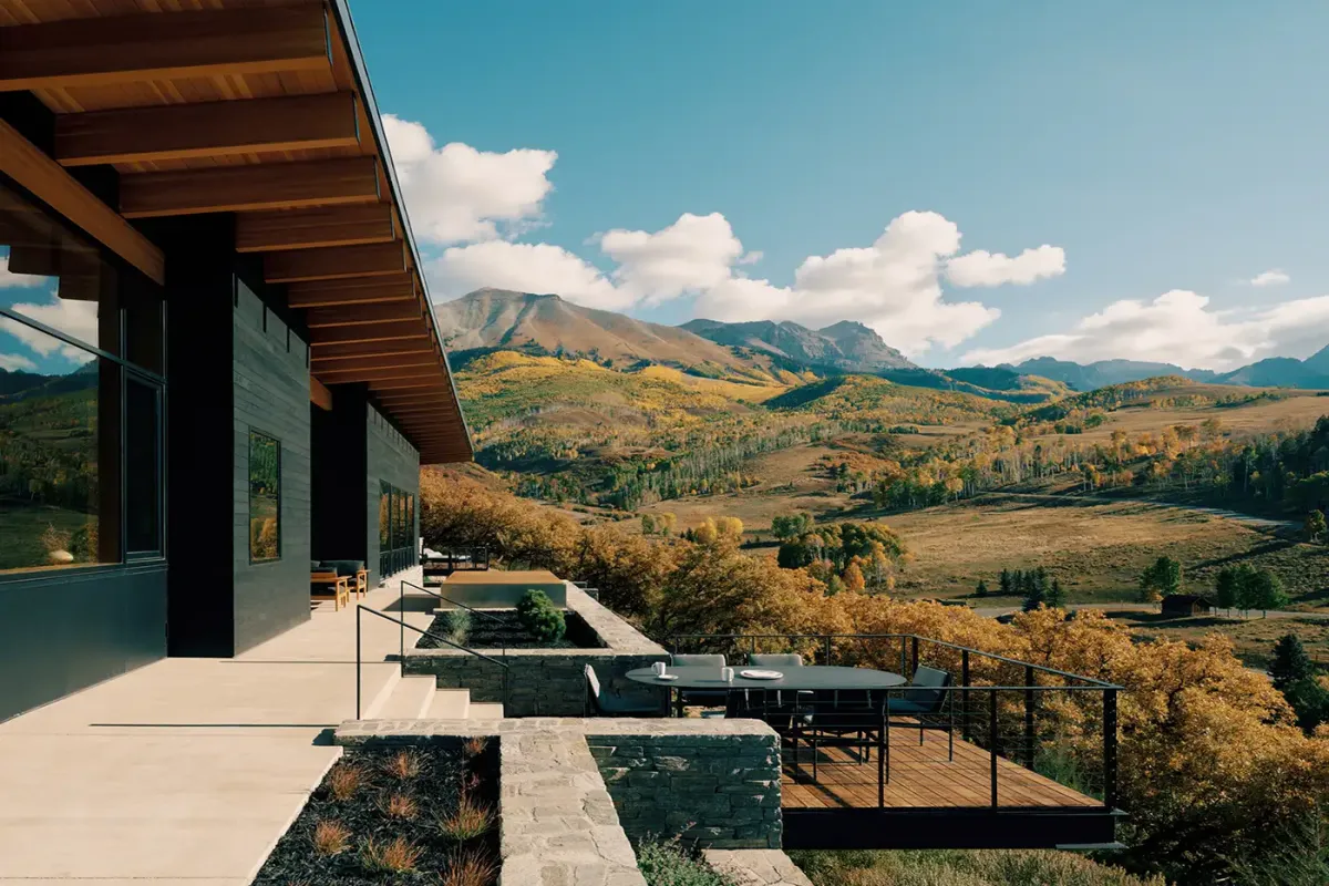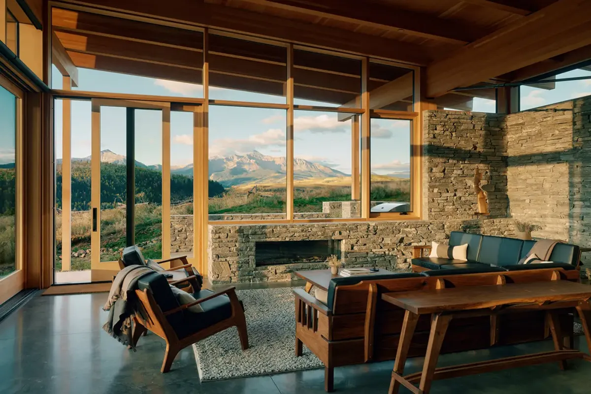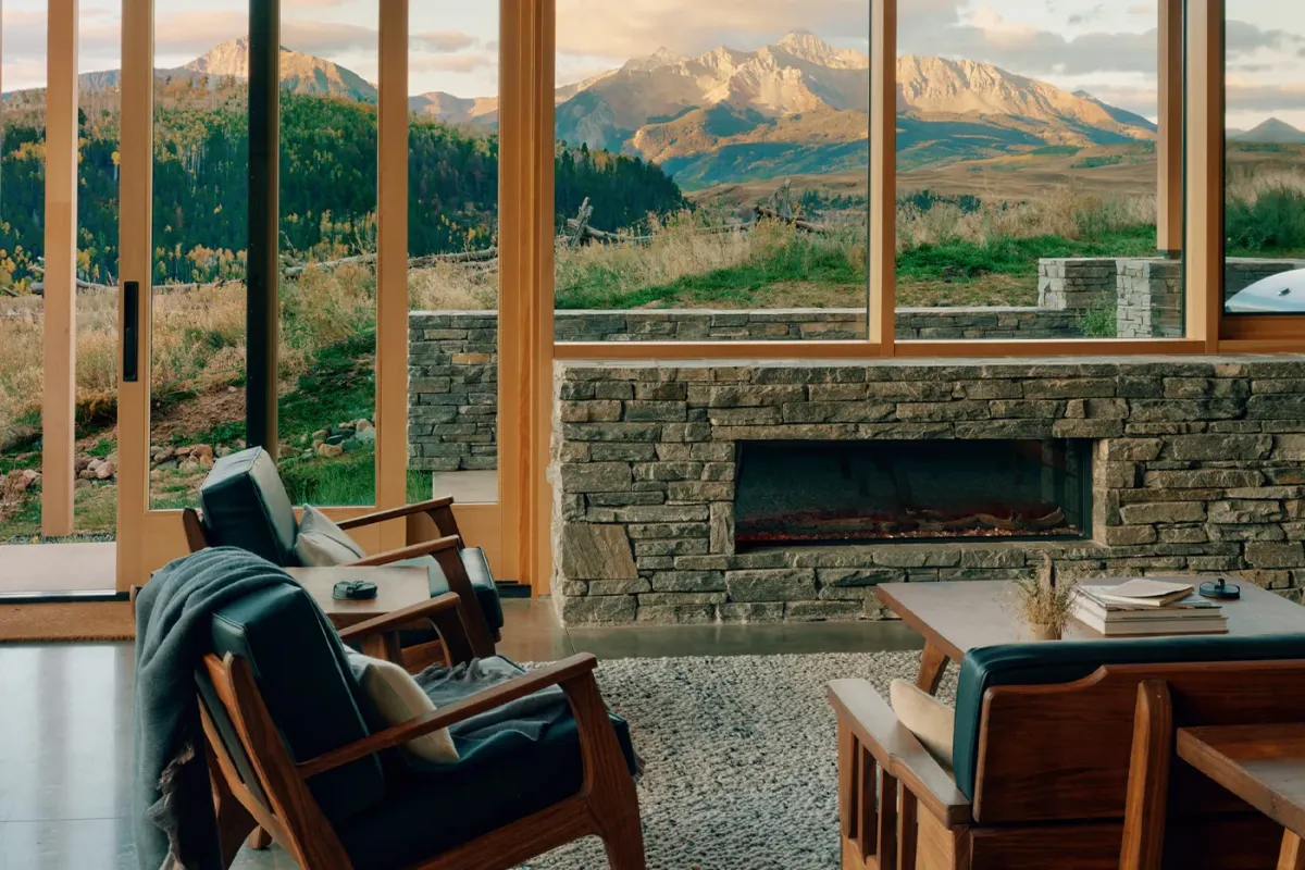 Emphasizing sustainability without compromising luxury, The Lookout Telluride is a Net-Zero Energy home. Crafted from Rocky Mountain Quartzite, Shou Sugi Ban siding, and Douglas Fir, every element has been chosen to harmonize with the natural environment. The polished concrete floors seamlessly blend indoor and outdoor living, welcoming the diverse climate of the San Juans.