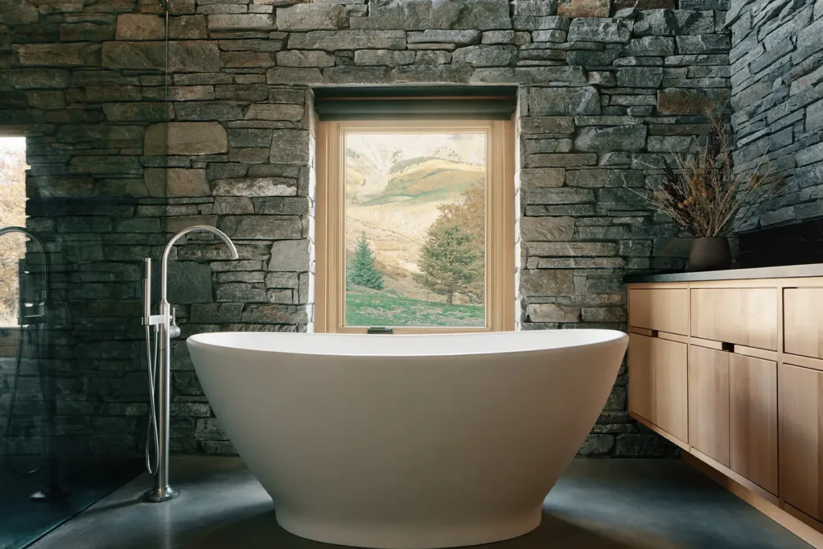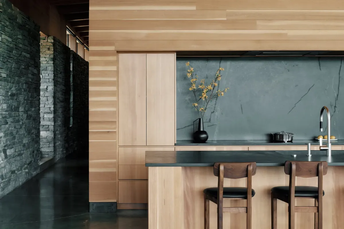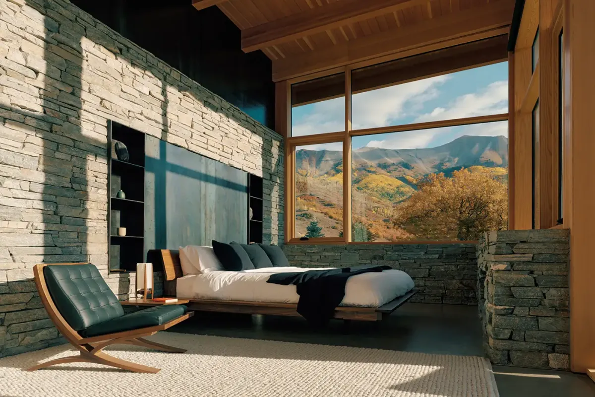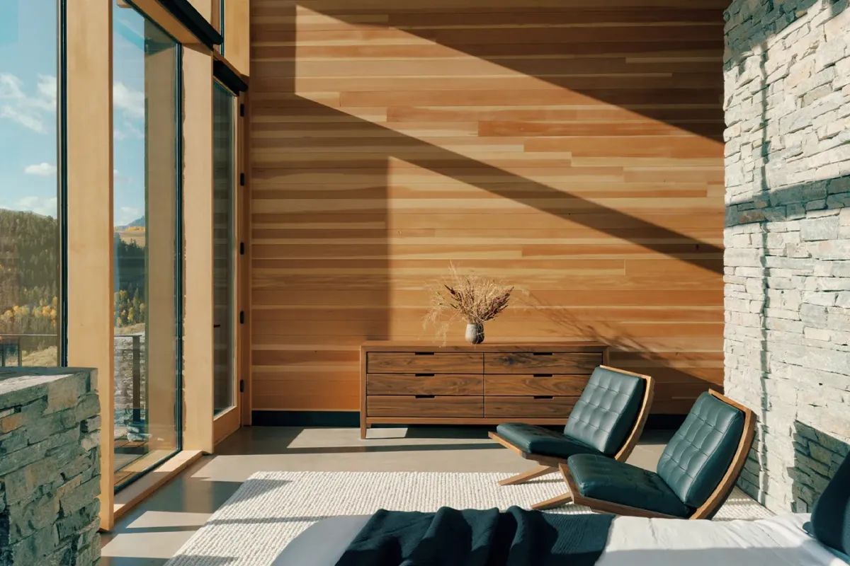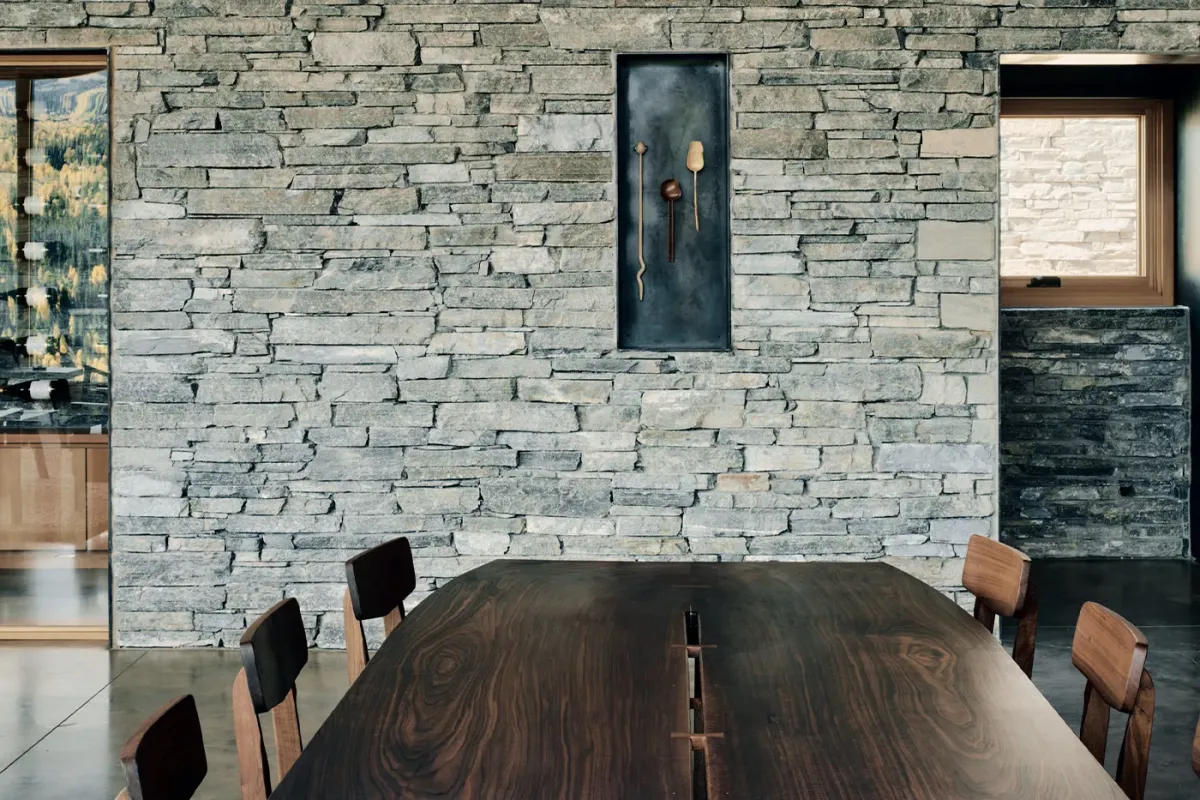 Emphasizing sustainability without compromising luxury, The Lookout Telluride is a Net-Zero Energy home. Crafted from Rocky Mountain Quartzite, Shou Sugi Ban siding, and Douglas Fir, every element has been chosen to harmonize with the natural environment. The polished concrete floors seamlessly blend indoor and outdoor living, welcoming the diverse climate of the San Juans.
