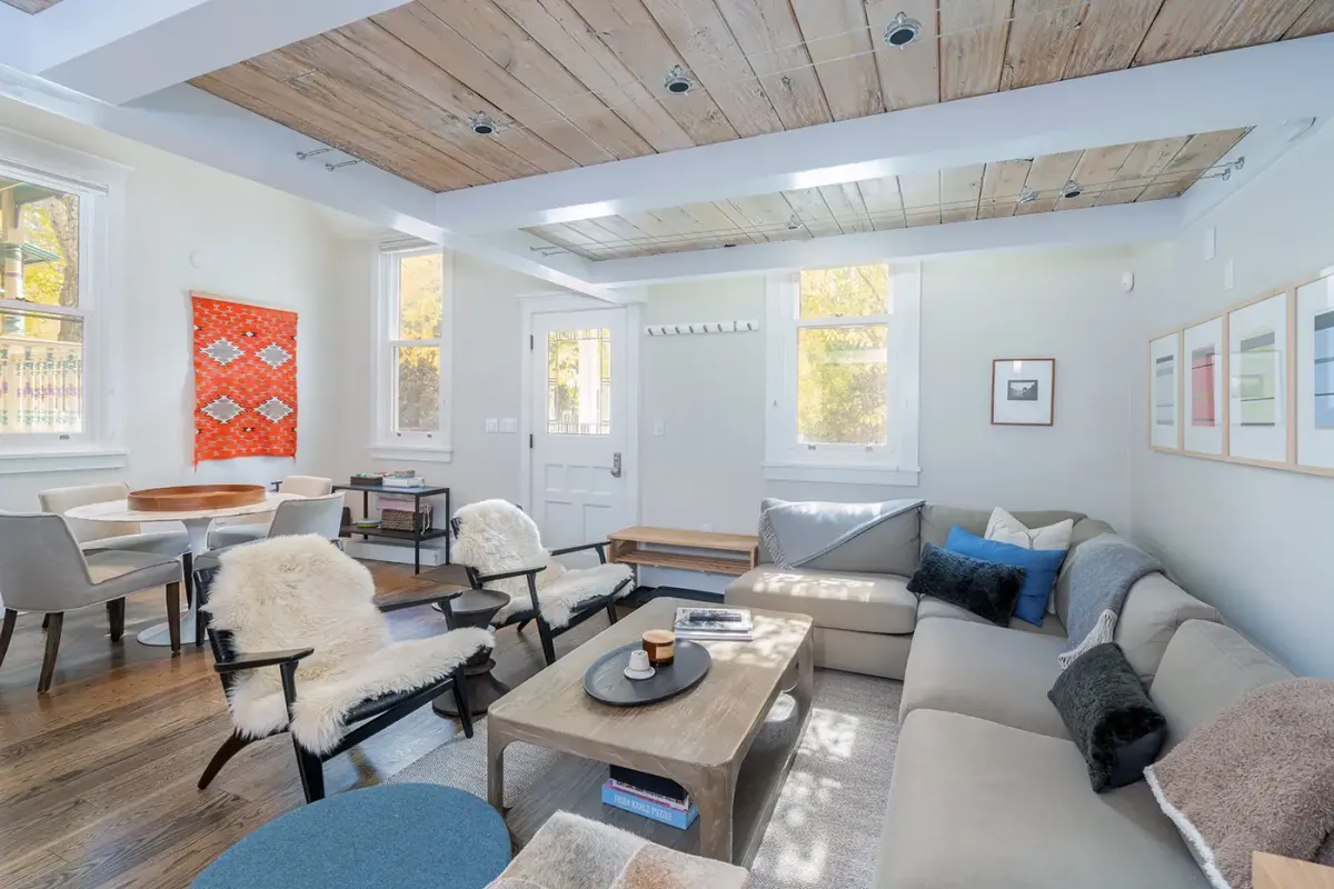 Tucked across the street from the historic Elk’s Lodge, Hummingbird House is a cheerful, free-standing two-bedroom home that blooms with character—especially in summer, when vibrant flowers frame its welcoming exterior. Just two blocks from both Main Street and the gondola, this home places you moments from Telluride’s best dining, shops, and mountain adventures.