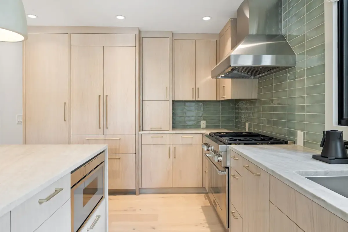 Thoughtfully designed for both form and function, the kitchen is outfitted with top-of-the-line appliances, a spacious island with bar seating for five, and elegant finishes that reflect the home’s modern mountain aesthetic. Natural light floods the space, highlighting refined textures and craftsmanship throughout.