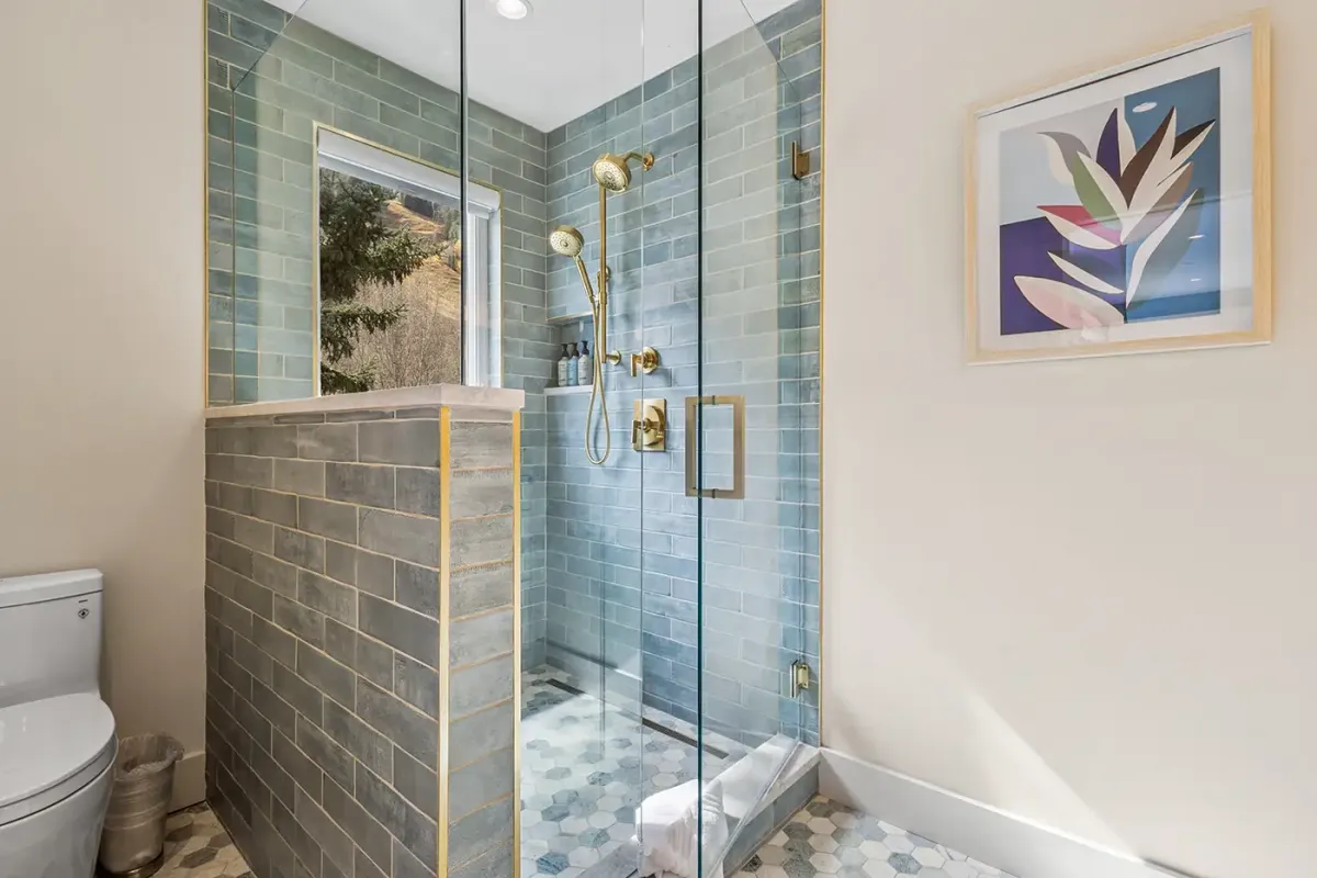 Each bathroom showcases tasteful Morroccan tilework and elevated finishes, with Taj Mahal vanities, and spa-inspired showers designed for relaxation after a day on the mountain.